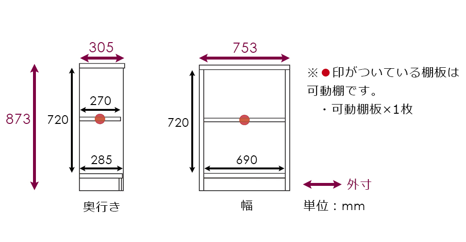 幅753X奥行305X高さ873