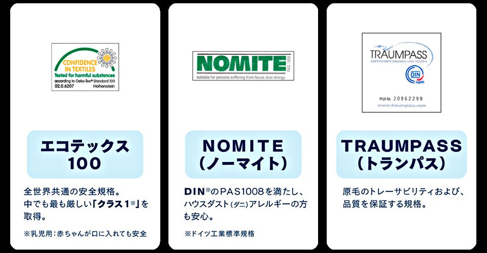 DIN※のPAS1008を満たし、ハウスダスト(ダニ)アレルギーの方も安心してお使いいただける証です。