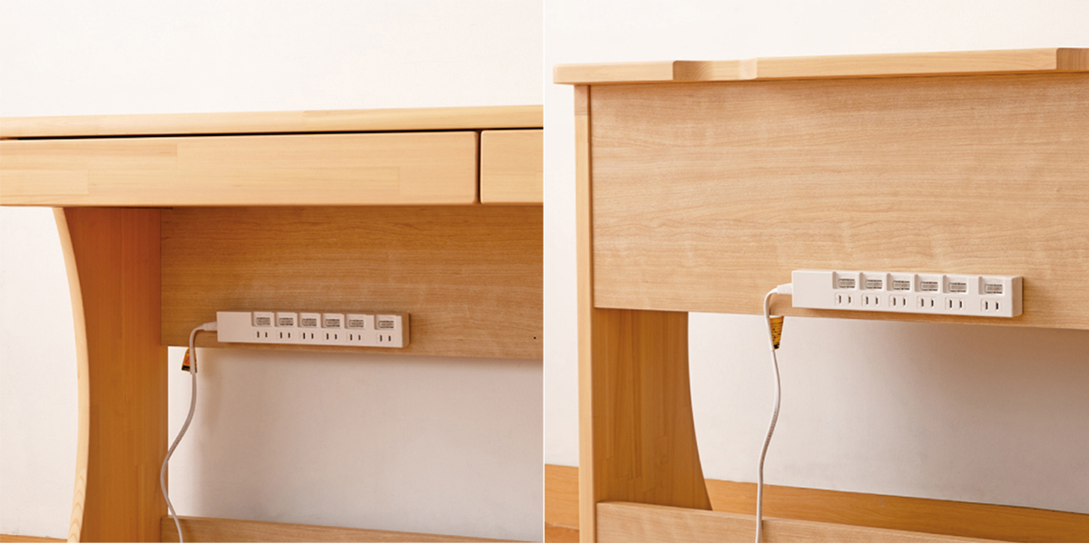 天板後部にはえぐり加工をしました。壁につけてもパソコンなどのコードが通せます。