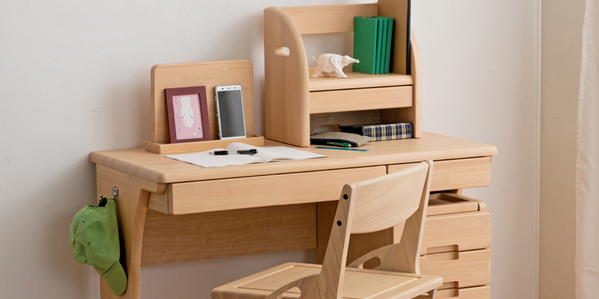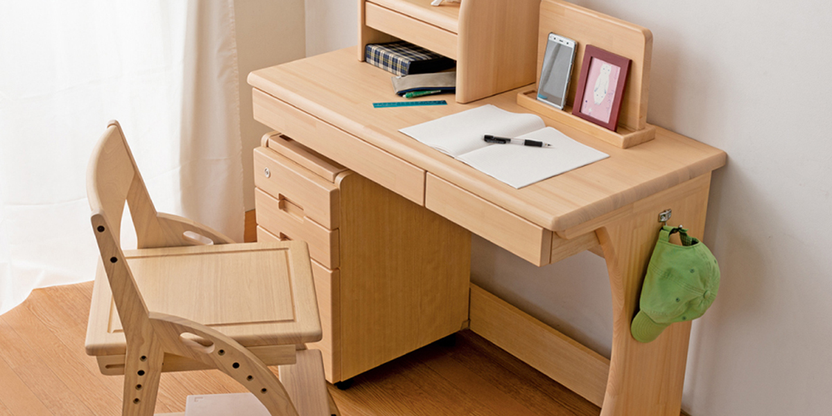 吉野産ヒノキ材をふんだんに使った「日本の机、ポライト」
