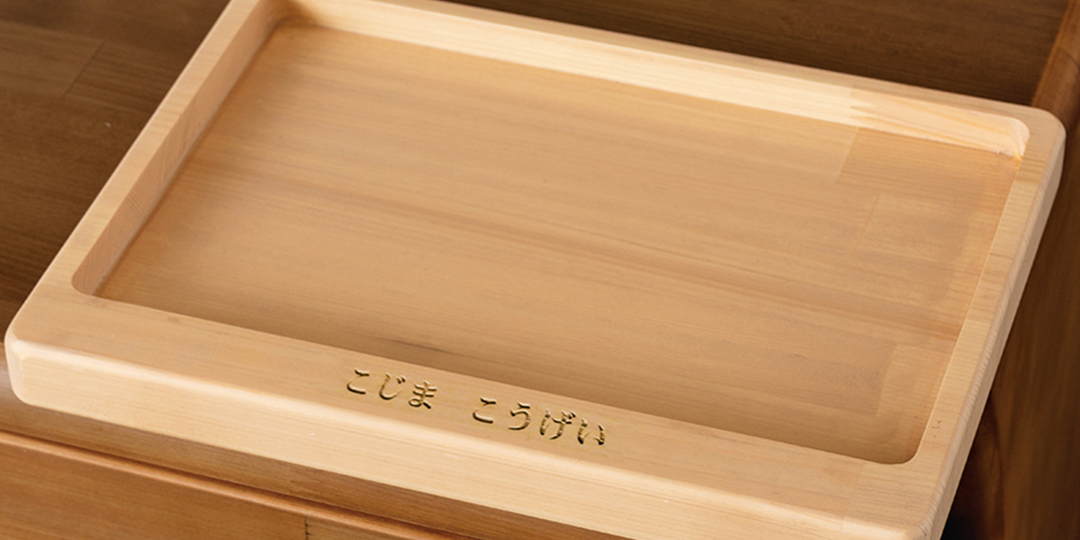 鉛筆やボールペンなど、文具を整理するためのヒノキ製のトレーです。引き出しの中やワゴンの天板に収まるように設計されています。お名前を無償で彫刻することができます。