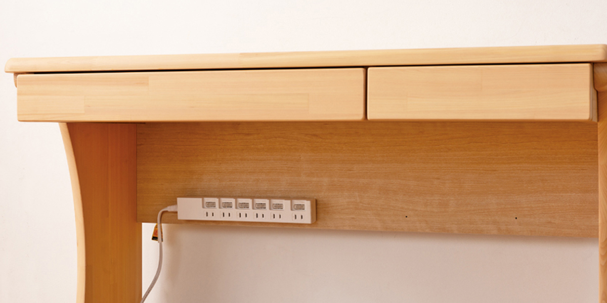 天板後部にはえぐり加工をしました。壁につけてもパソコンなどのコードが通せます。