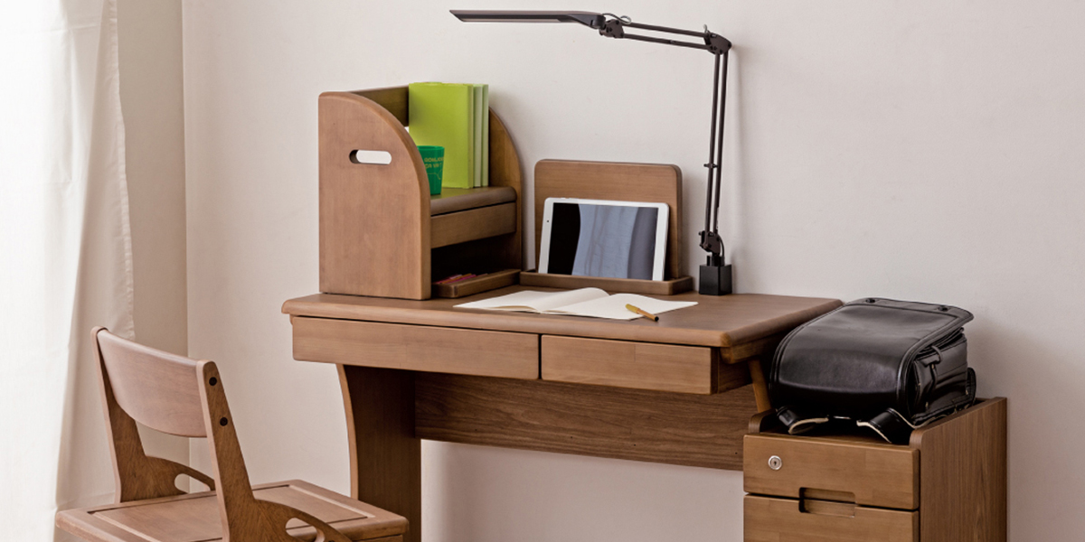 小島工芸 学習デスク「ラークアップ」ワゴン付き ミディアム色