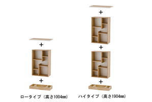 幅60cm ロータイプ:固定棚板x2、可動棚板x2
