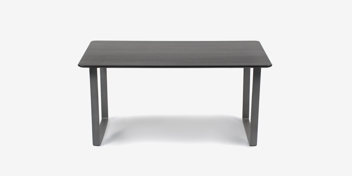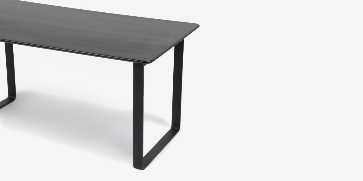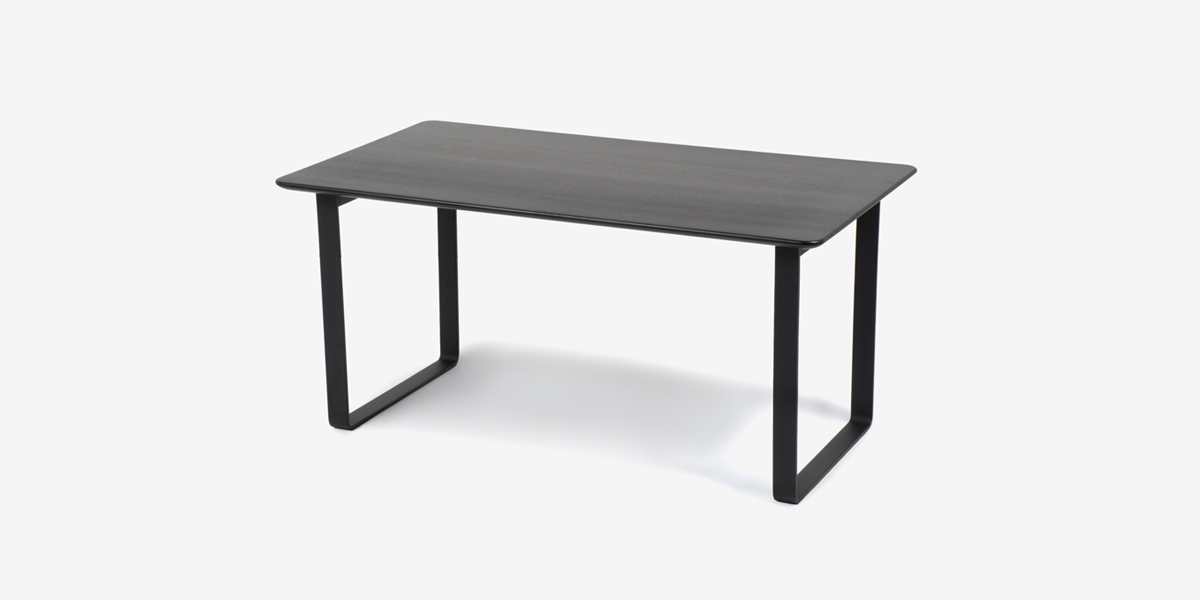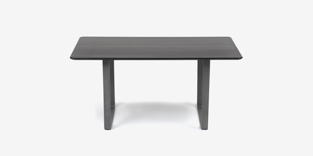 天然木の天板とスチール製の金属脚の組み合わせがモダンな印象のダイニングテーブルです。天板には27mmの厚みがあるレッドオークの無垢集成材を使用しています。その中でもまっすぐな木目が特徴の柾目材のみを使用しています。