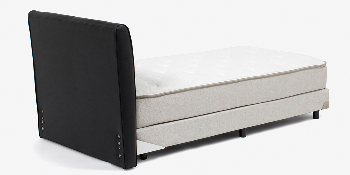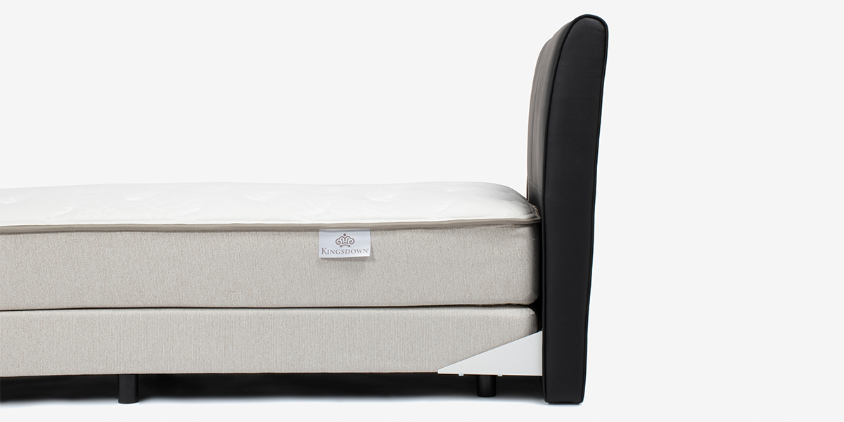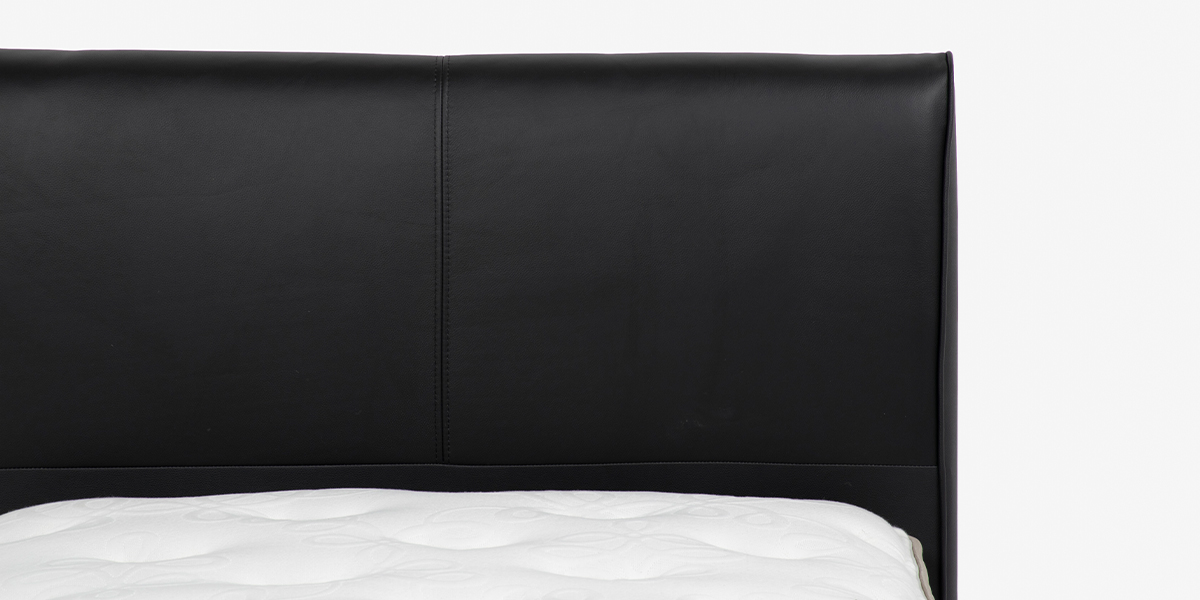 ヘッドボードには本革を使用し、しっとりとした肌触りとなっております。※約半分より下(マットレスで隠れる部分)はPVCを使用。