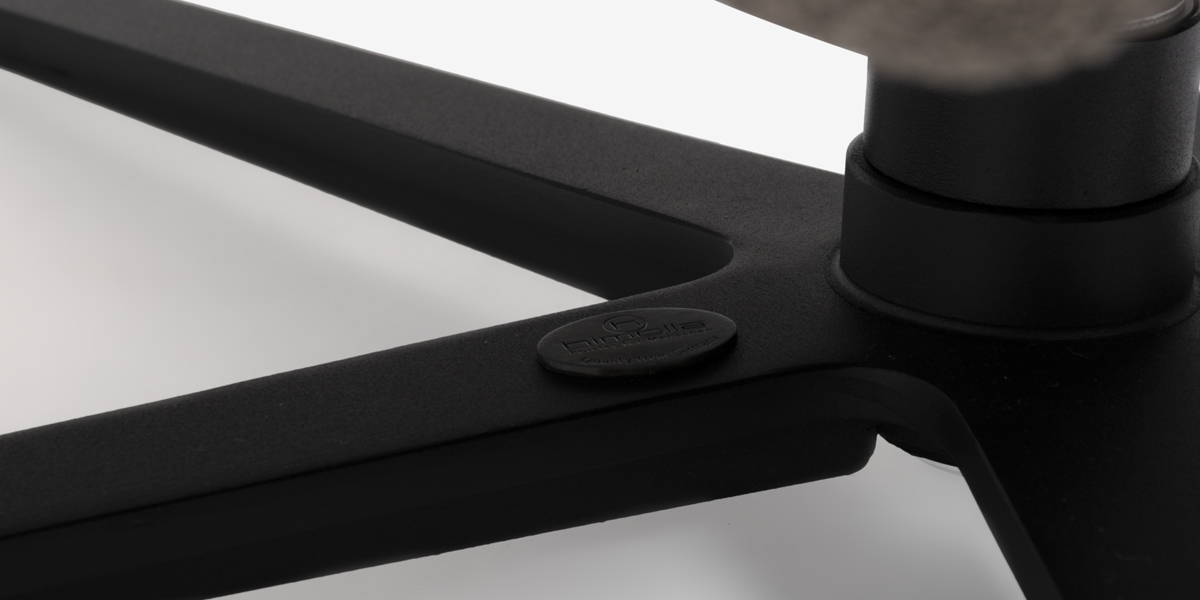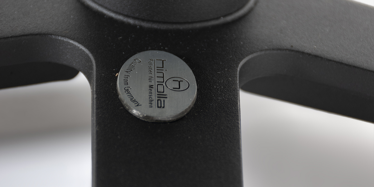 脚元にはヒモラ社製品を表すプレートが付いています。ドイツのクラフトマンシップに基づいて作り出された製品への自信と信頼の証です。