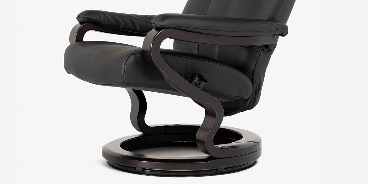 ゼロストレスチェア model.9883 Sサイズは、身体をしっかりと支えてくれます。また、スムーズなリクライニング動作で座面と背もたれの角度を自由に調整できるので、自分の好みの姿勢でリラックスできます。オットマンに脚を伸ばせば、さらにゆったりとくつろぐこともできます。