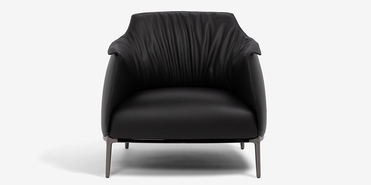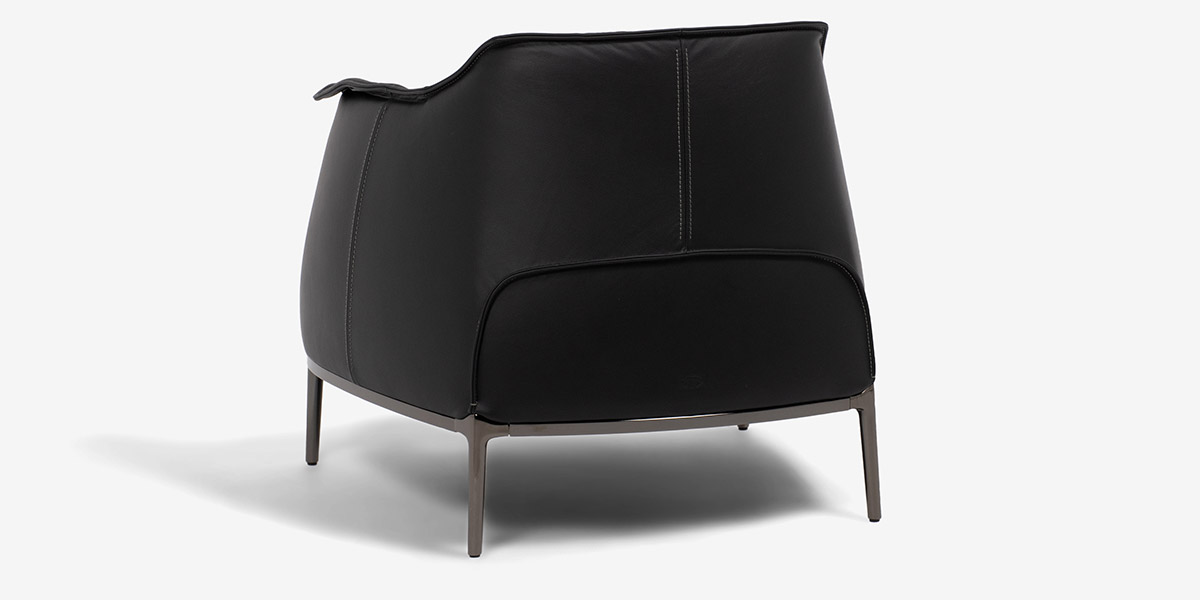 背もたれのレザーは自然な縦プリーツを生み出すように張られ、心地よい動きを演出します。
