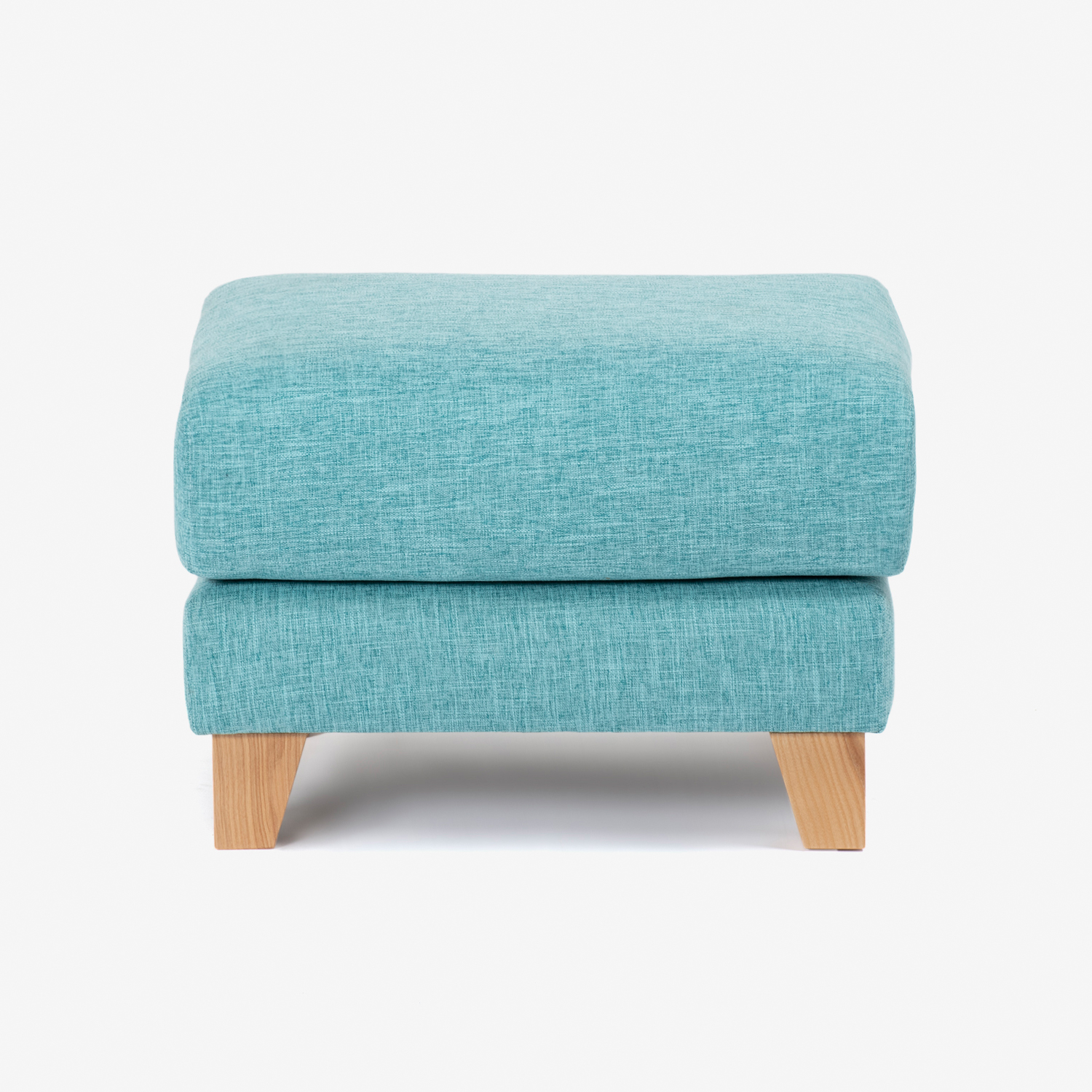 ブルーの張地がさわやかなオットマンです。座クッションにはポケットコイルを使用し快適なすわり心地をサポートします。※画像は3人掛けのイメージです。