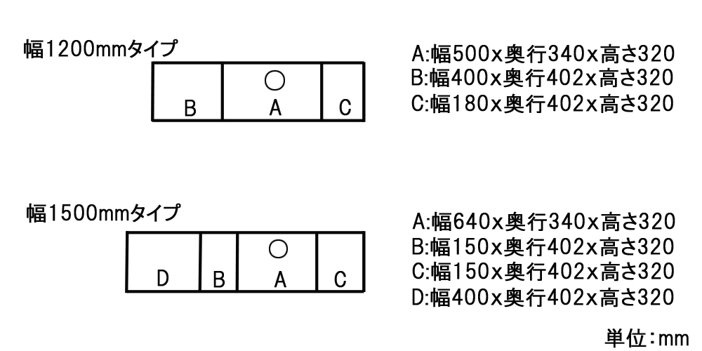 | 幅150cm | 幅1500x奥行450x高さ430 |