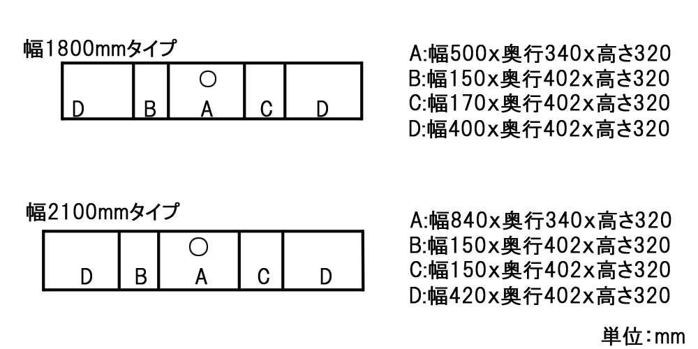 | 幅210cm | 幅2100x奥行450x高さ430 |