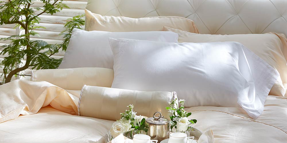 100番手の糸を使用して打ち込み本数370本で仕上げた生地は、きめ細やかでシルキーな光沢となめらかな肌触りが特徴です。細い糸を使用することで、柔らかな質感を生み出しています。