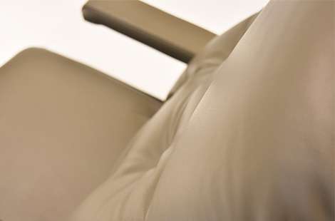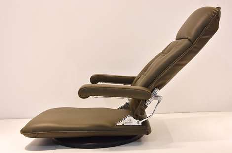 座面が360度回転し、肘掛けははねあげ式なので出入りがしやすいです。背もたれにはギヤ式3段階リクライニング機能付き。
