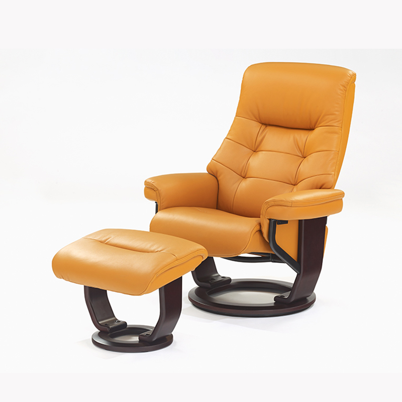 リクライニングチェア 「マルコーニ2」半革オレンジ色 オットマン付