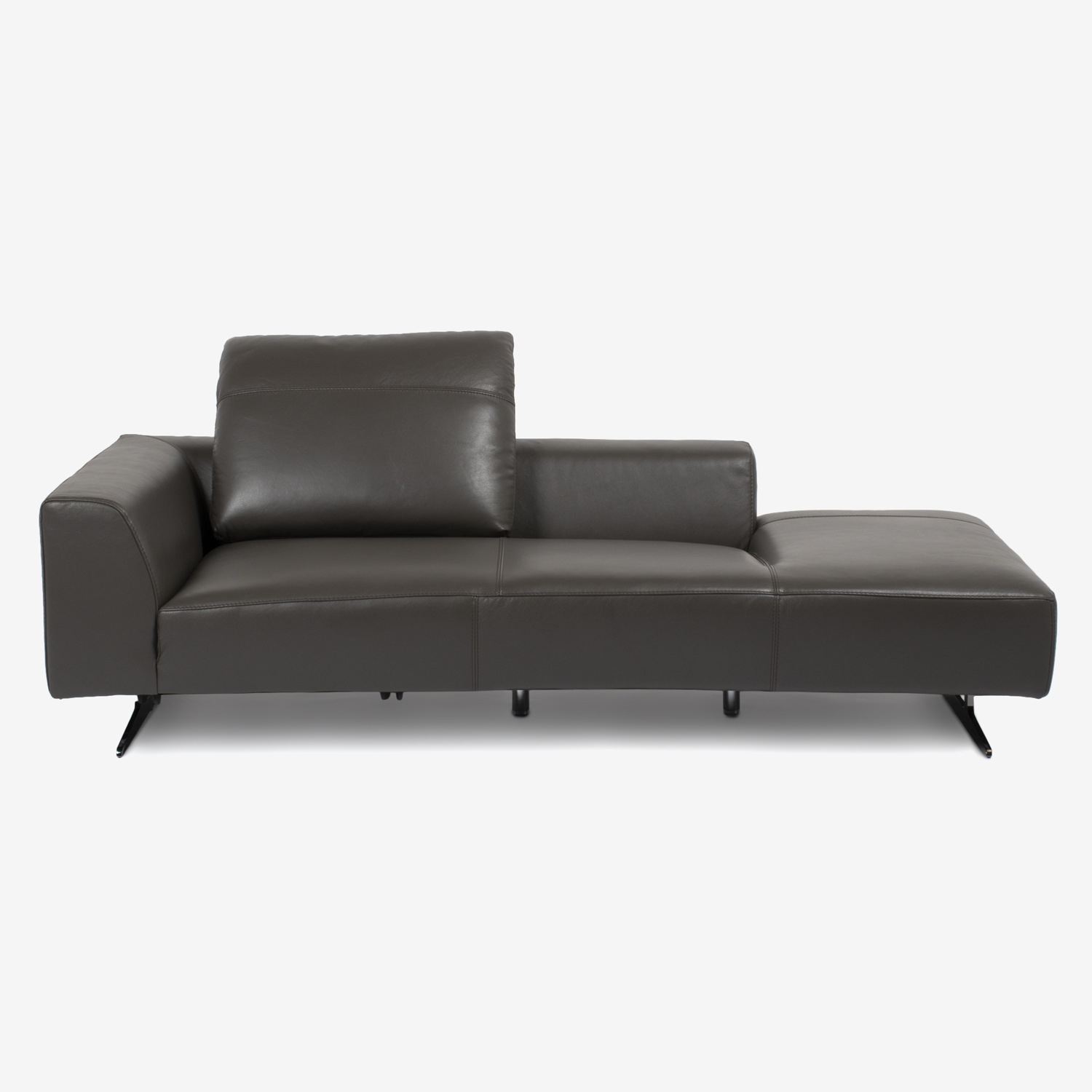 スタイリッシュな脚部が浮遊感を演出する本革張りのソファです。シリーズ商品と組合わせて大きなコーナーソファやカウチソファとしてもご使用いただけますし、単体でおしゃれな片肘ソファとしてもご使用いただけます。グラファイトカラーの本革とブラックニッケル色の金属脚がモダンな印象です。