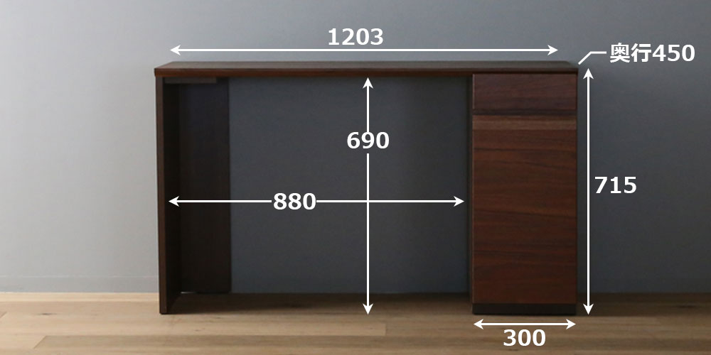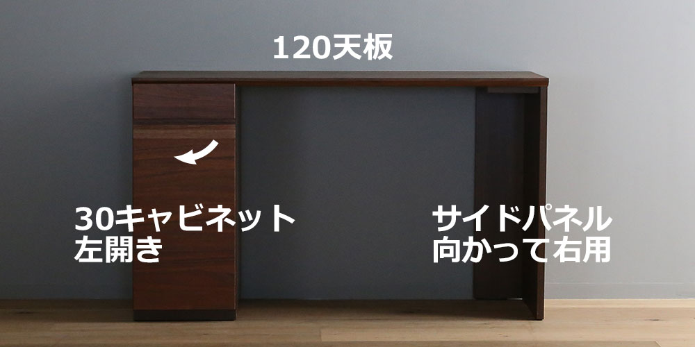 ユニットデスク「アスター」片袖タイプ(30キャビネット)幅120.3cm ウォールナット材
