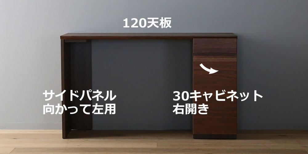設置するスペースに合わせて、キャビネット(扉の開く向き)とサイドパネルの位置をお選びください。