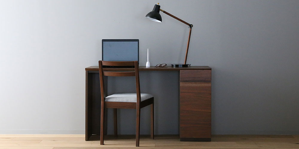 リビングに置いても違和感のないスッキリとしたデザインのユニットデスク「アスター」
