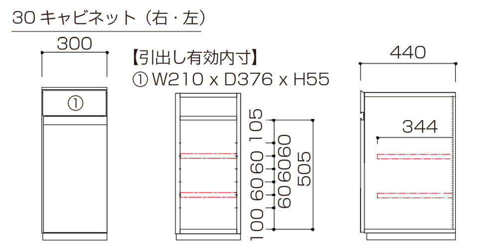 向かって【左】サイドパネル左用 +【右】30キャビネット
