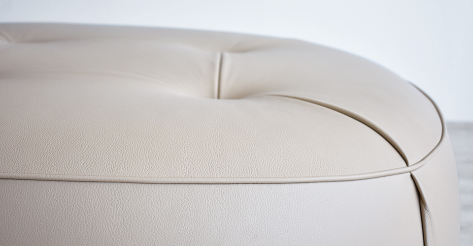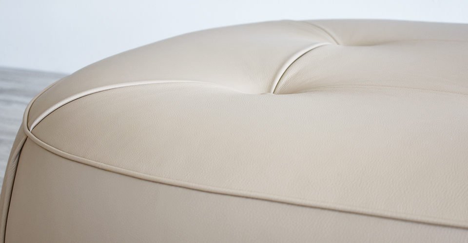 Poltrona Frauの伝統的な装飾と細工から着想を汲み取り、イタリアンファッションのテーラードの要素と融合しました。クラシックなキルティング細工と柔らかなプリーツがデザインの波状の形を引き立てています。スツールのしなやかなカーブは女性らしいシルエットを彷彿させます。