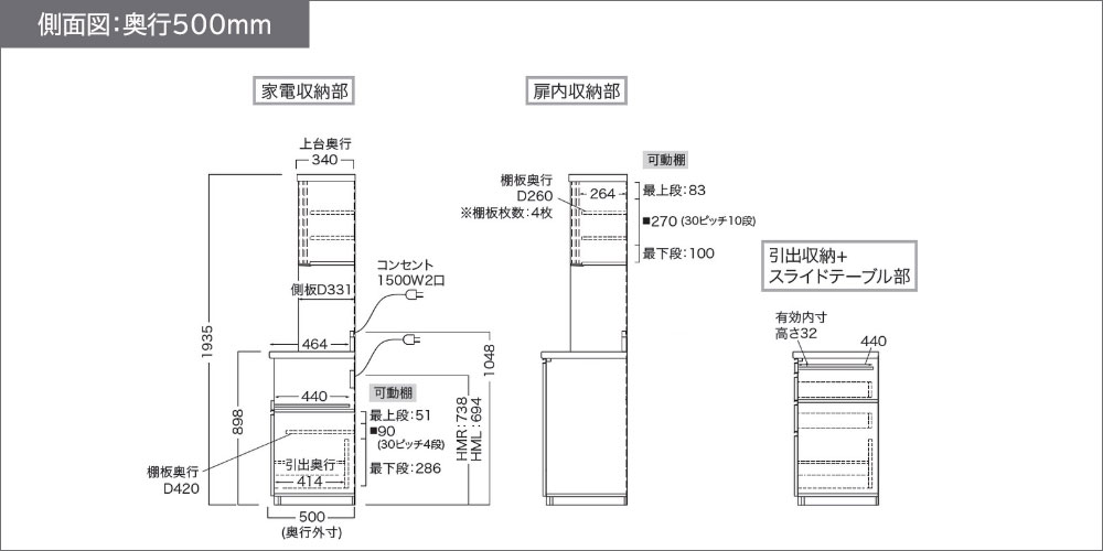 | 奥行500mm | 幅1200x奥行500x高さ1935 | 898 |