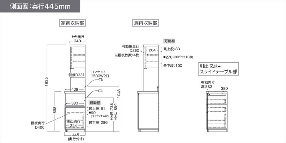 | 奥行445mm | 幅1400x奥行445x高さ1935 | 898 |