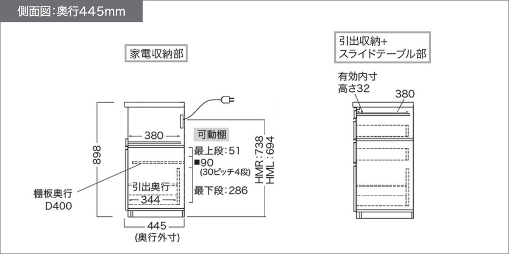 | 奥行445(深引出し部) | 2個 | ー | ー | ー |