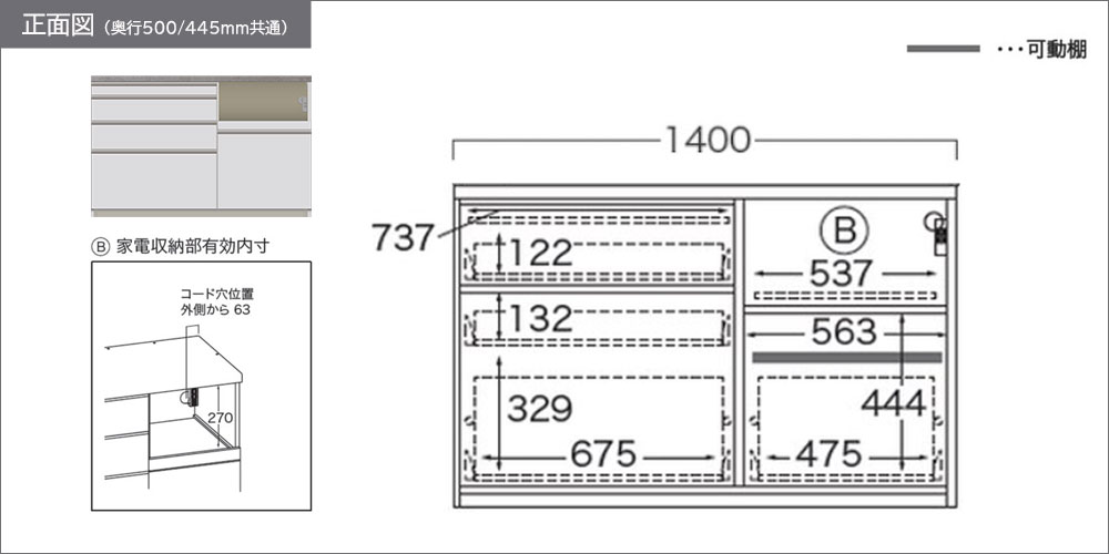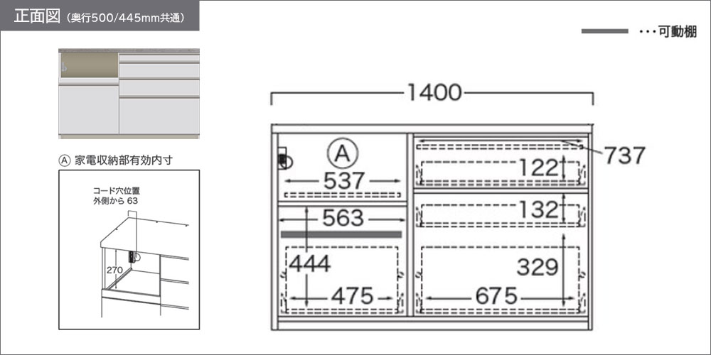 | 奥行445mm | 幅1400x奥行445x高さ898 |