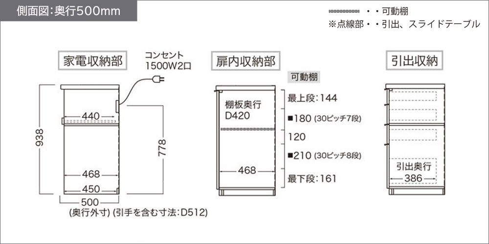 | 奥行500mm | 幅1800x奥行500x高さ938 |