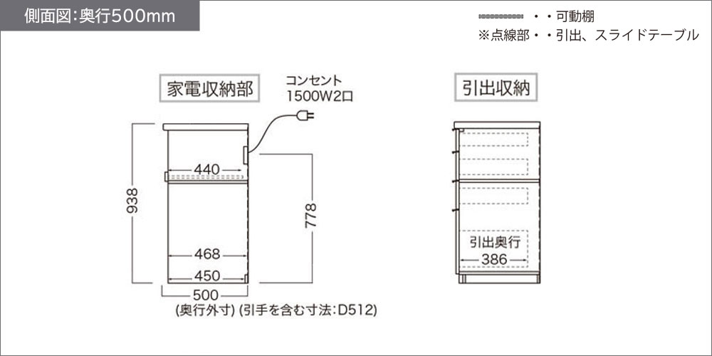 | 奥行500mm | 幅1400x奥行500x高さ938 |