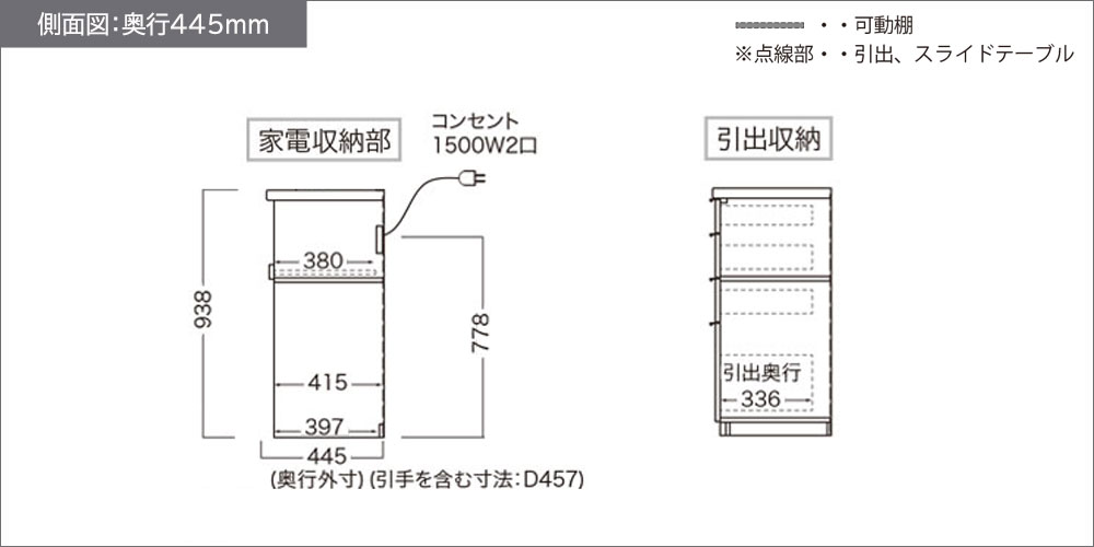 | 奥行445mm | 幅1400x奥行445x高さ938 |
