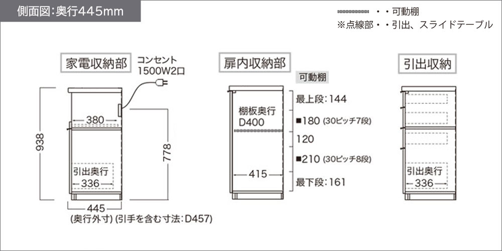 | 奥行445(深引出し部) | 2個※ | ー | ー | ー |