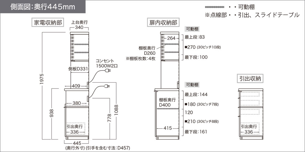 | 奥行445(深引出し部) | 2個※ | ー | ー | ー |