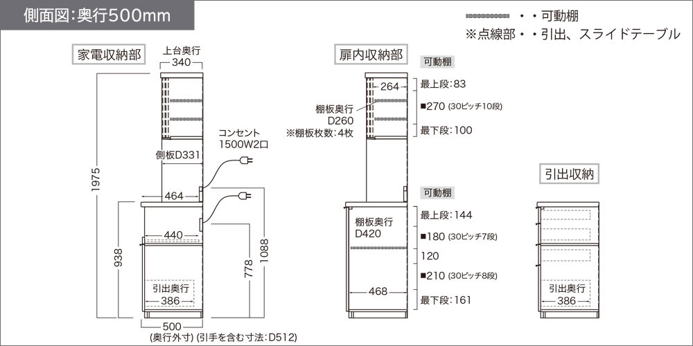 | 奥行500(深引出し部) | 2個 | 2個 | ー | ー |