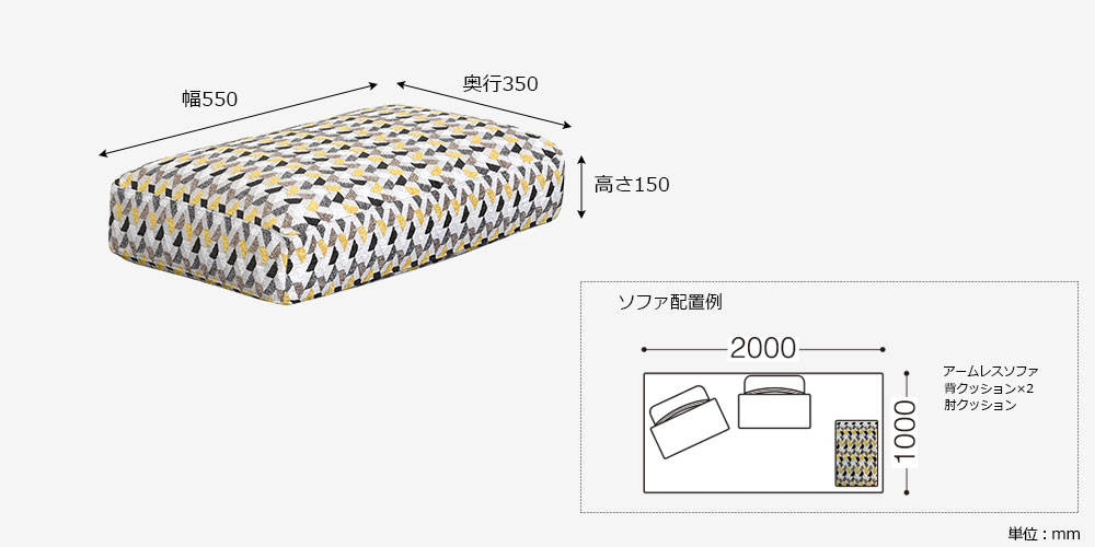 ※商品の個体差やクッションのふくらみなどにより、測る位置によって表記と実際のサイズが多少異なる場合がございます。