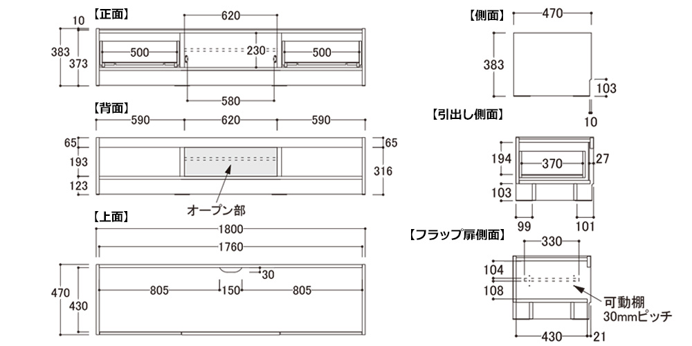 四方から前板と側板と背板で天板を囲い込む構造が強度と安定感をもたらし、床に接する台輪部分を奥に納めることで浮いたような軽快さを感じさせてくれます。※画像はイメージです。