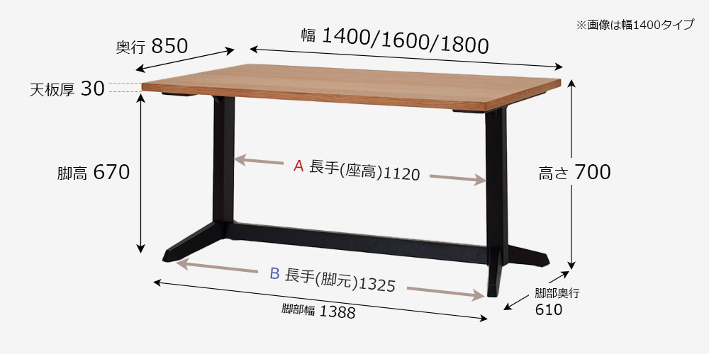 ※画像はテーブル「幅1400mm 天板NA/脚ロイBK」+チェア「シン2 NA(別売り)」のコーディネートイメージです。