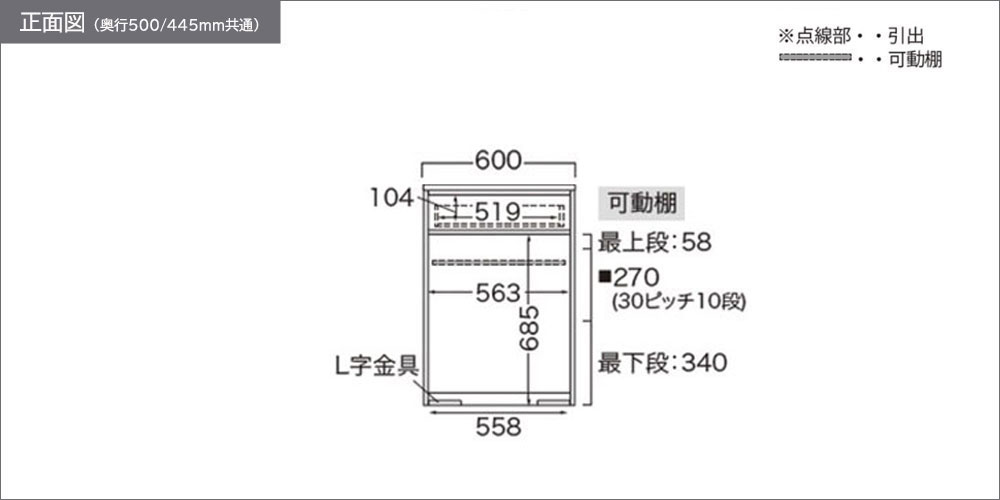 | 奥行445mm | 幅600x奥行445x高さ884 |
