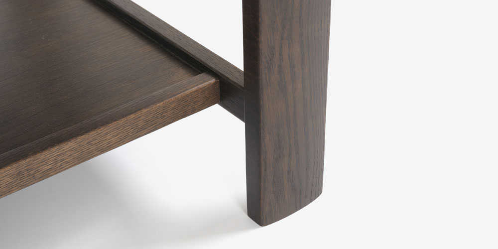 四角く、すっきりとしたシンプルなつくりの中に、伝統工法の刻み組み接ぎを取り入れています。重厚感があり品を感じるシルエットでありながら、側板の緩やかなカーブが優しい手触りを伝えてくれます。