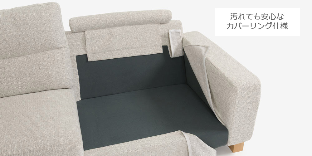 脱着テープで取り外し可能なカバーリングソファです。ドライクリーニングすることができるので、お手入れも安心です。
