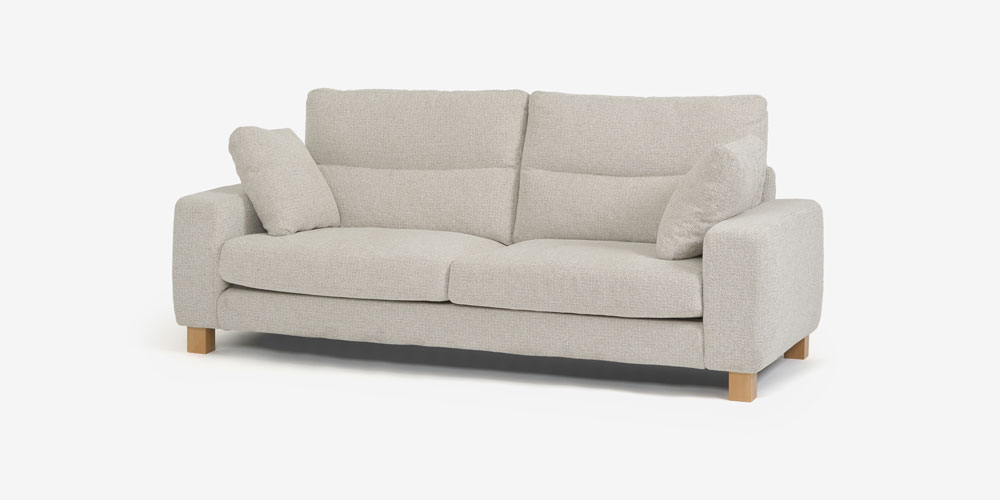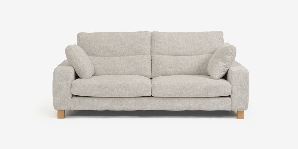 ざっくりとした織り目で素材本来の表情を感じさせる生地。ナチュラルな温もりと、素朴な風合いが、リラックスできる空間を創り出します。脚部やクッションの組合わせ次第で、カジュアルだけでなくモダンスタイルのインテリアにも馴染みます。