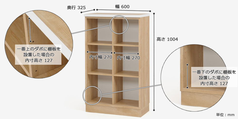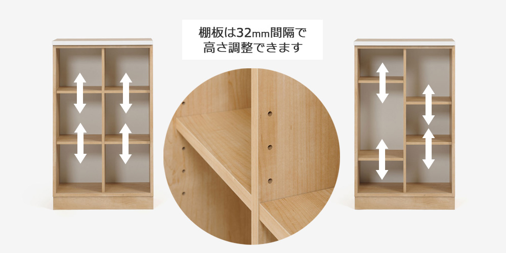 可動棚板4枚は32mm間隔で高さを変更できます。※画像はイメージです。