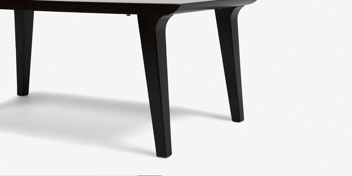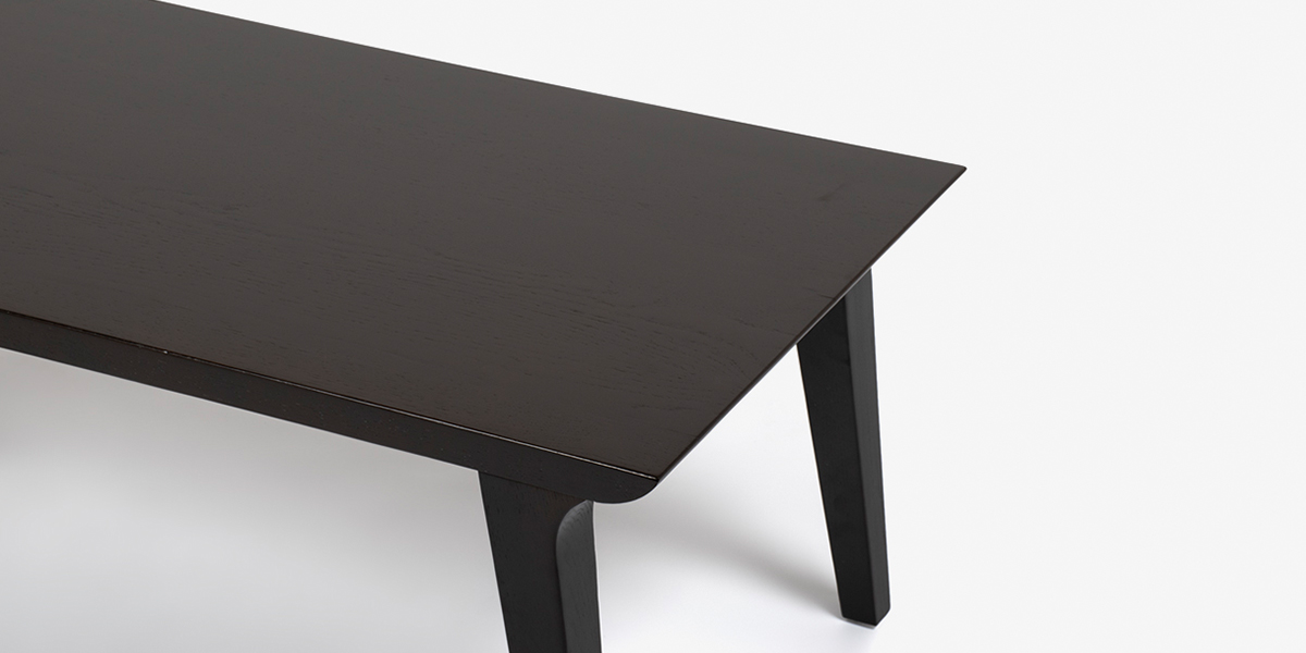その無垢材から脚につながる曲線は、シャープなフォルムの中に高級感のあるやさしいアクセントを感じさせてくれます。