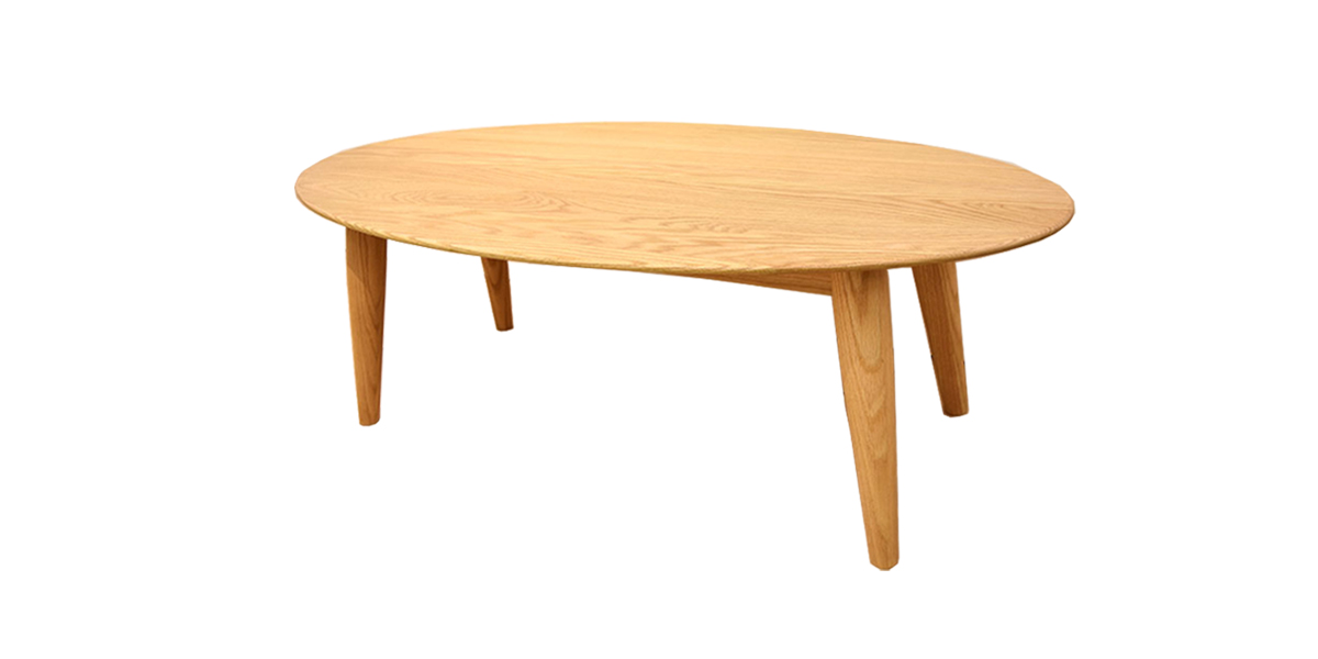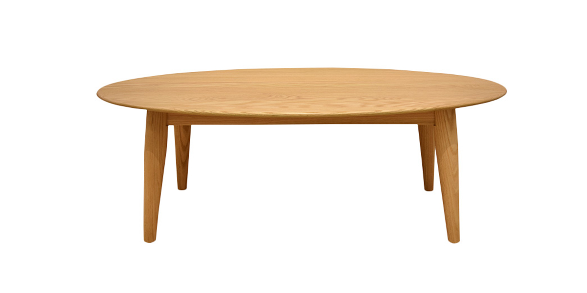 楕円型のセンターテーブルはやさしい印象のフォルムが特徴です。また、同じサイズの長方形と比べ、圧迫感なくお使いいただけます。