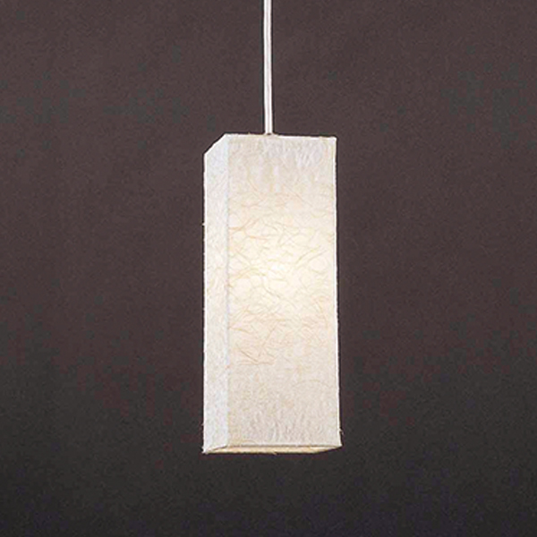 岐阜県の伝統工芸品である美濃和紙(麻落水紙)を使用したペンダント。美濃和紙からもれる柔らかい光がやさしくお部屋に広がります。和室のみならず、モダンな空間にも溶け込み、食卓の演出に適しています。和紙の質感は残したまま、強くて破れにくいラミネート加工を施しています。飽きのこないデザインですので、長くご愛用いただけます。
