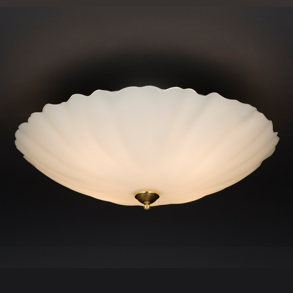 緩やかな波状の凹凸模様が放射状に広がるデザインと真鍮の装飾が、シンプルな中にも優美な印象を与えるシーリングライト。