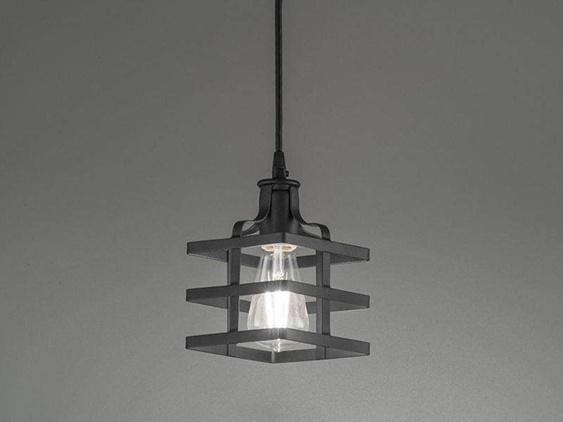シンプルデザインとマットブラック塗装のアイアンフレームが凛々しい表情のランプ。電球がデザインの一部になっているためお部屋に合う電球を選ぶのも楽しくなります。