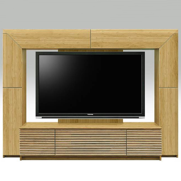テレビ台の前板はモダンでスタイリッシュな印象となるスリットデザインになっています。凹凸があることで陰影が生まれ、無垢材の持つ豊かな表情を楽しむことができます。
