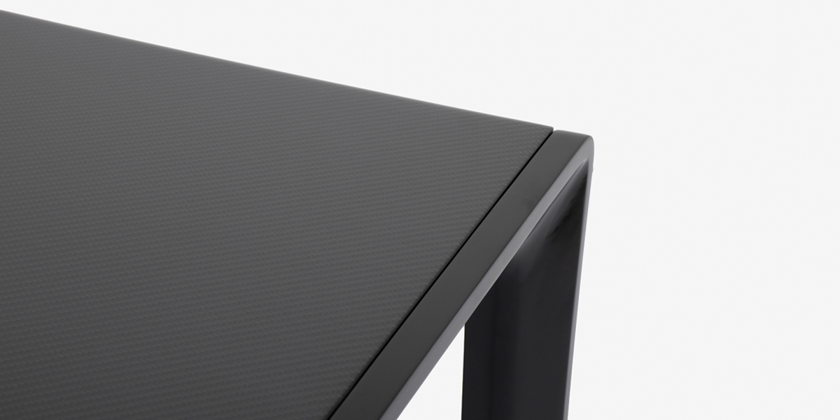 特殊素材カーボンの網目模様が美しいテーブル。 カーボンは炭素繊維とも呼ばれる、軽量で強度や弾性に優れた高性能素材です。 本品に使用されているカーボンはカーボン繊維の中でも最先端技術による特殊な繊維で、航空機やフォーミュラーカー等にも使用されています。